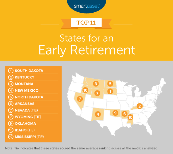 - Great Plains score well - The Northern Great Plains states - South Dakota, North Dakota and Wyoming - all score well. These states tend to come with low costs of living, a major ingredient in a successful early retirement.