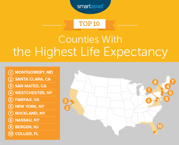 Montgomery, Maryland has the longest life expectancy, according to our analysis. At birth, the average person in this county can expect to live more than 83 years. The average American household (with 2.5 people) spends about $60,000 per year, or roughly $24,024 per person. That means 83 years of living costs about $2 million. - Santa Clara County, CA